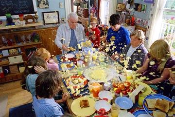 Here's how Cheaper by the Dozen works: with every kid present in the film, the overall tone becomes less amusing. As the title implies, there are twelve children, which makes for a pretty lame movie. The film is even worse considering its pedigree, it is a loose remake of the cherished original from 1950, based on the book by Frank B. Gilbreth Jr. and Ernestine Gilbreth Carey, which was based on their life. This remake casts the Bakers (thankfully the producers avoided the awfully punny and obvious title) who live in rural (and idyllic) Illinois, only to move to Chicago to see their carefully orchestrated lives quickly fall apart in the manner most amusing for a generic family comedy. Before the move, Tom (Steve Martin, Looney Tunes: Back in Action, Bringing Down the House) coaches for a Division III football team, and Kate (Bonnie Hunt, Stolen Summer, Monster's Inc.) stays at home with the kids, slowly working on a book about the family. This gives them both ample time to take care of their brood. Tom's dream was always to coach for his alma mater, and his old teammate Shake (Richard Jenkins, Intolerable Cruelty, The Core) gives him the opportunity to do so. Tom doesn't want to miss the opportunity to fulfill his dream, and when he finds out that he will be given a big salary and a big house, he and Kate decide it is best for the family. Of course, the children hate being uprooted. Charlie (Tom Welling), the second oldest, is a senior in high school, leaving behind a quarterback position and his girlfriend. Needless to say, he is a tad peeved. Once they get there, there is the typical culture shock of moving from the farm to the city, and then Kate discovers that her publisher wants to put her on a book tour that starts as a weekend and keeps getting longer. Tom, not wanting his wife to miss out on her dream, encourages her to go, saying that he can handle the children. Well, if it isn't already obvious, he cannot, and eventually no one watching cares. Director Shawn Levy (Just Married, Big Fat Liar) is aiming this film directly at children. This means that when Tom takes over, anarchy breaks out and all sorts of messy hijinks ensue. Most of the children make no lasting impact. Lorraine (Hilary Duff, The Lizzie Maguire Movie, Agent Cody Banks) is the only other child in high school, and she's a fashion expert. Sarah (Alyson Stoner) is one of the larger troublemakers and Henry (Kevin Schmidt, Mind Rage). There are two twins, some other random children, and Mark (Forrest Landis), one of the youngest children who always feels left out. His only friend seems to be his mom and his pet frog, so when Kate leaves for the tour, he begins feeling very lonely. The oldest kid, Nora (Piper Perabo, Slap Her She's French, Lost and Delirious) is already out of the house, living with her boyfriend Hank (Ashton Kutcher, My Boss's Daughter, Just Married), whom the other children detest. They enjoy playing all sorts of cruel tricks on him whenever he visits. Now it's ironic that Kutcher, by far the most amusing actor here, goes uncredited in what amounts to a self-deprecating extended cameo. Hank is an actor, and none too bright. He realizes that his roles come from his looks and not his ability, and even says so. Oh, what true words. The script, by the assembly line of Craig Titley (Scooby-Doo, See Spot Run), Joel Cohen and Alec Sokolow (Goodbye Lover, Money Talks), and Sam Harper (Just Married, Rookie of the Year) is just a series of gags ending with a big family togetherness moment. The gist of the story is that the Bakers need to become one big, happy, thermonuclear family again, so amidst all the arguing and chaos something sad needs to happen to pull them all together. Martin and Hunt are nice together, but are basically on autopilot. Everything feels too much like a sitcom. It's fine on television, but not 'good' enough to merit a movie. |
