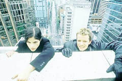 The title of Kill Me Later is the gimmick the story relies on for the entire movie. A bank robber captures a suicidal teller on the brink of jumping, and she promises to be his hostage as long as he agrees to kill her later. This little gimmick does not have enough weight to sustain the entire movie, yet writer/director Dana Lustig (Wedding Bell Blues) and co-writer Annette Golti Gutierrez (Wedding Bell Blues) are probably chuckling at what they probably think is a clever and amusing set up. Unfortunately, things progress in a manner clever only if the film came out decades before it did. The teller is Shawn Holloway (Selma Blair, Legally Blonde, Down to You), and she is having an unbelievably bad day. She is having an affair with her boss and learns that his wife is pregnant. This means he will never leave his wife for Shawn. Shawn's father ignores her, and even worse, her goldfish dies. She decides to end it all by jumping off the top of her bank. Charlie Anders (Max Beesley, Glitter, It Was an Accident) is about to have a bad day. He and two friends are robbing the bank where Shawn and her boss works. Somebody sees Shawn about to jump and calls the police. The police arrive just in time to witness the robbery. Shawn flees to the roof, and Billy (Brendan Fehr, Final Destination, The Forsaken) is the only one to escape with the money. Now on the roof, Charlie and Shawn meet, and flee together. Here is where the movie begins to slide downhill into predictability. See, Charlie is really a nice guy. He has no qualms about robbing a bank, but balks when asked to kill Shawn. He will do everything he can not to kill her. The thrill of the chase is exhilarating to Shawn, who will eventually decide that life is worth living, and the two will eventually get together. The obviousness of the Lustig's set up is surprising only to Charlie and Shawn. Kill Me Later is an exercise in style over substance, with Lustig going overboard with camera tricks and a loud soundtrack. All this flashiness feels like an attempt to cover a nearly nonexistent story that is dull when it actually is there. It tries to convince audiences that it is cool not by being cool, but by saying it is cool. Blair and Beesley do not have much chemistry together, due mostly to Blair's performance and the script. In her other work, she can play anything from a goofball to a scheming seductress, but here, she is not believable as somebody who wants to die. The other minor players in Kill Me Later are even less interesting and flat. Kill Me Later is the type of film that appears as a blip on the movie screens of America. It shows up seemingly randomly one week, then is gone by the following Friday. |