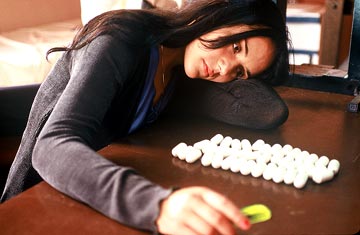 Maria Full of Grace won the Audience Award at the 2004 Sundance Festival (it was nominated for the Grand Jury Prize) and its star, newcomer Catalina Sandino Moreno tied with Charlize Theron's performance in Monster for Best Actress at the 2004 Berlin International Film Festival. That's a lot of accolades, but after seeing the film, it's clear why. Maria Full of Grace is a harrowing film about the journey of a drug mule from rural Columbia to the immigrant ghettos of New York. It's also the first feature length film from writer/director Joshua Marston. Marston tells his story simply and starkly, letting the situations speak for themselves. He does not throw in any sort of cliché moments or overwrought drama. Instead, by taking a straightforward and direct look at things, the inherent danger of the entire situation seems magnified. A sense of futility and inevitability permeates the film. Maria Alvarez (Moreno) works in a flower factory in Columbia. Her family is dirt poor, and they use the money she earns to survive. Her life changes when she discovers she is pregnant, and her boyfriend is too much of an idiot to do anything reasonable about it. Opportunity presents itself in the form of Franklin (Jhon Alex Toro, The First Night, Maximum Penalty), a sleazy guy that works for some drug dealers. Alvarez discovers that she can make a lot of money by trafficking drugs across the border by swallowing nearly sixty pellets full of cocaine. The danger is great, but the rewards are greater. Marston steadily builds the tension with each scene. One of the more harrowing scenes comes as she is preparing to board her flight. A doctor sprays some aneasthetic in her throat, and she begins the painful process of swallowing the drugs. She was warned that if she loses any, the dealers will go after her family. Worse, if any of the pellets break, she will die. It's hard to imagine things getting worse, but Marston manages to up the ante as Alvarez comes closer to America. The really scary part is that everything is so matter-of-fact. Although she is concerned, Alvarez seems eerily resigned to whatever may happen. The histrionics come in the form of her friend Blanca (Yenny Paola Vega), who basically tags along. The only other person Maria can ask for help is Lucy (Giulied Lopez), who has been on a few of these trips before. Every moment is dangerous. After Maria arrives in America, things actually get worse. One interesting aspect of this film is that Maria seems neutral on the entire issue of drugs. She is only doing this as a means to survive. The money she will earn is worth the trip and the potential dangers, as explained to her. Moreno seems resigned to much of everything that happens. She is in a stupor for much of the film as she just wants to get things over with. It is as if she is numbing herself to everything around her. The only thing that breaks her out of this is when Lucy begins looking sick on the plane. It's simple, stark, and very gripping. |