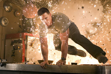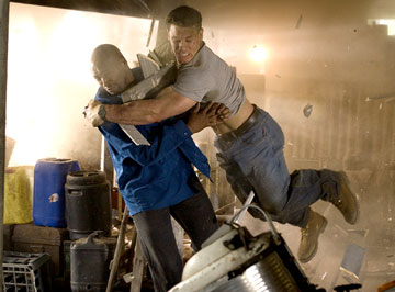 First the Rock, then Kane, now John Cena. The march of WWE stars continue, and like Kane's See No Evil, The Marine showcases an impressive wrestler but takes away much of the charisma that made the wrestler famous in the first place. The Marine is a generic, bare bones action movie with touches of attempted humor. It places Cena in the emotionless role of John Triton, an ex-Marine trying to start life again after his tour of duty. Triton lives and breathes the military. He cannot envision staying at home, although this is exactly what his wife Kate (Kelly Carlson, Paparazzi, 3000 Miles to Graceland) wants. He tries working at a bank, but that doesn't go too successfully. In an industry where people complain about a lack of plot, director John Bonito and screenwriters Michelle Gallagher (Strange Hearts) and Alan McElroy (Wrong Turn, Ballistic) take this criticism and go the wrong way. There is half an hour of setup, most of it useless. Bonito shows Triton in action, then shows him out of place at home. Triton adjusts to his new job, and doesn't like it. Meanwhile, Rome (Robert Patrick, Firewall, Walk the Line) and his crew steal a large amount of diamonds, and the police begin chasing them. After nearly a third of the movie, Triton agrees to go on vacation, and everybody has a fateful meeting at a gas station. The plot finally starts up. Morgan (Anthony Ray Parker, The Matrix, The Frighteners), token black man and the most psychotic of Rome's crew, gets nervous and kills a policeman. Rome and his crew panic, try to kill the other policeman, and steal Triton's care, taking Kate as a hostage. Triton was in the gas station at the time, and needless to say, is a bit irked at the entire situation. He takes off after Rome as a one-man army. Nothing can stop him, even as Rome's men (and one woman) shoot an armory's worth of bullets into a police car. Everything is a bit mindless, and Cena doesn't really need to do much except run, jump, and do other assorted stunts. To be fair, Bonito wasn't going for some deep film. There are touches of humor throughout, usually courtesy of Parker, and one great reference to T2. Aside from the beginning, everything moves extremely quickly, although the number of explosions does get a bit ridiculous. Rome is running through a swamp. The police, with their squad cars and helicopters cannot track him. The only one who can is Triton, who is his own combination of a terminator and Rambo. The real drawback of The Marine is that it will basically be for Cena fans only. They know how much charisma he has, and how enjoyable he can be to watch outside the ring during wrestling. Here, he is emotionless (the stuff at the beginning isn't great, and isn't promising). It's about the same as watching a clip reel consisting of explosions and stunts cobbled together from other movies. |