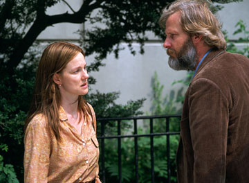 At the center of The Squid and the Whale is a family on the verge of collapse. Daniel and Joan Berkman are going through a divorce, and their sons Walt and Frank are caught in the middle. Daniel (Jeff Daniels, Good Night, and Good Luck, Because of Winn-Dixie) is a college literature professor. He is egotistical and pretentious, yet has not written anything in years. Joan (Laura Linney, The Exorcism of Emily Rose, Kinsey) is also a writer, and Daniel despises that she is now more successful than he is. Although the movie never delves too deeply into why they are splitting, it is clear that Joan had an affair. The reason that Noah Baumbach's (Mr. Jealousy, The Life Aquatic with Steve Zissou) works is because he contrasts sharp humor with profound sadness. It is really depressing to see Joan and Daniel slowly rip apart, but there is so much humor (both funny and uncomfortable) that it is hard not to laugh. Baumbach uses the humor to cut the tension, in order to make things more bearable. It's interesting to note that there is not one likable character in the film. For the most part, they are all selfish jerks. They say caustic things to another, often followed by awkward silences. And the cast assembled is top-notch. Headlining is Linney, who gives yet another strong performance. She realized a long time ago that the marriage was over, and just wants to move on. She still loves her children, and will try to work with Daniel because of this. Daniel, on the other hand, has such a good impression of himself that it's hard for him to see anything else. Daniel's gives an amusingly self-absorbed performance. His older son Walt (Jesse Eisenberg, Cursed, The Village) looks up to him and is just as arrogant. The difference is that while Daniel may be smart, Walt is just lazy. Daniel's other son, Frank (Owen Cline, The Anniversary Party) doesn't like that his dad is trying to mold him into a mini-Daniel, and prefers the company of his mother. There isn't really a story, per se. Baumbach lets the characters loose and follows them as they deal with the separation. Daniel moves across the park into a run down house, and one of his students (Anna Paquin, Steamboy, X2) moves in with him. Walt begins dating Sophie (Halley Feiffer, You Can Count on Me), but doesn't realize he acts like a giant ass in front of her. He enters a talent contest at school and claims to have written Pink Floyd's Hey You. Frank is left to his own devices and drinks beer and picks up a "self-involved" pastime. Joan begins dating Frank's tennis instructor, the loopy Ivan (William Baldwin, Art Heist, Red Rover) who calls everybody "brother." As the family disintegrates further, the story coalesces towards the Walt character, who begins the painful process of growing up. He has to learn that nothing is black and white. Everything is more complicated than it initially seems, and Baumbach deftly conveys this with his characters. |